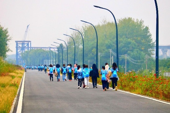 上半場是公司團(tuán)建活動,全體人員徒步走路線:青奧森林公園→江堤路→粉黛花田→洲島家園。(約10公里)